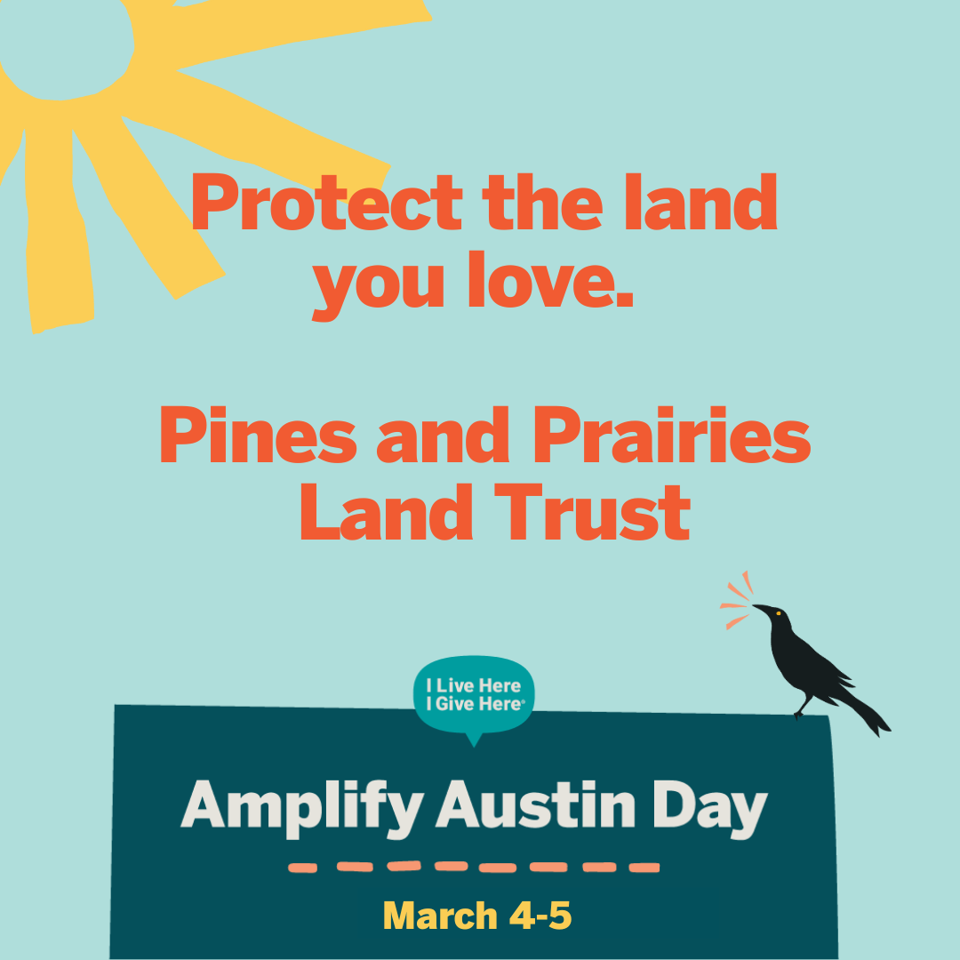 Pines and Prairies Land Trust is a 501(c)(3) and your gift is tax-deductible. Our tax identification number is: 74-2989863.